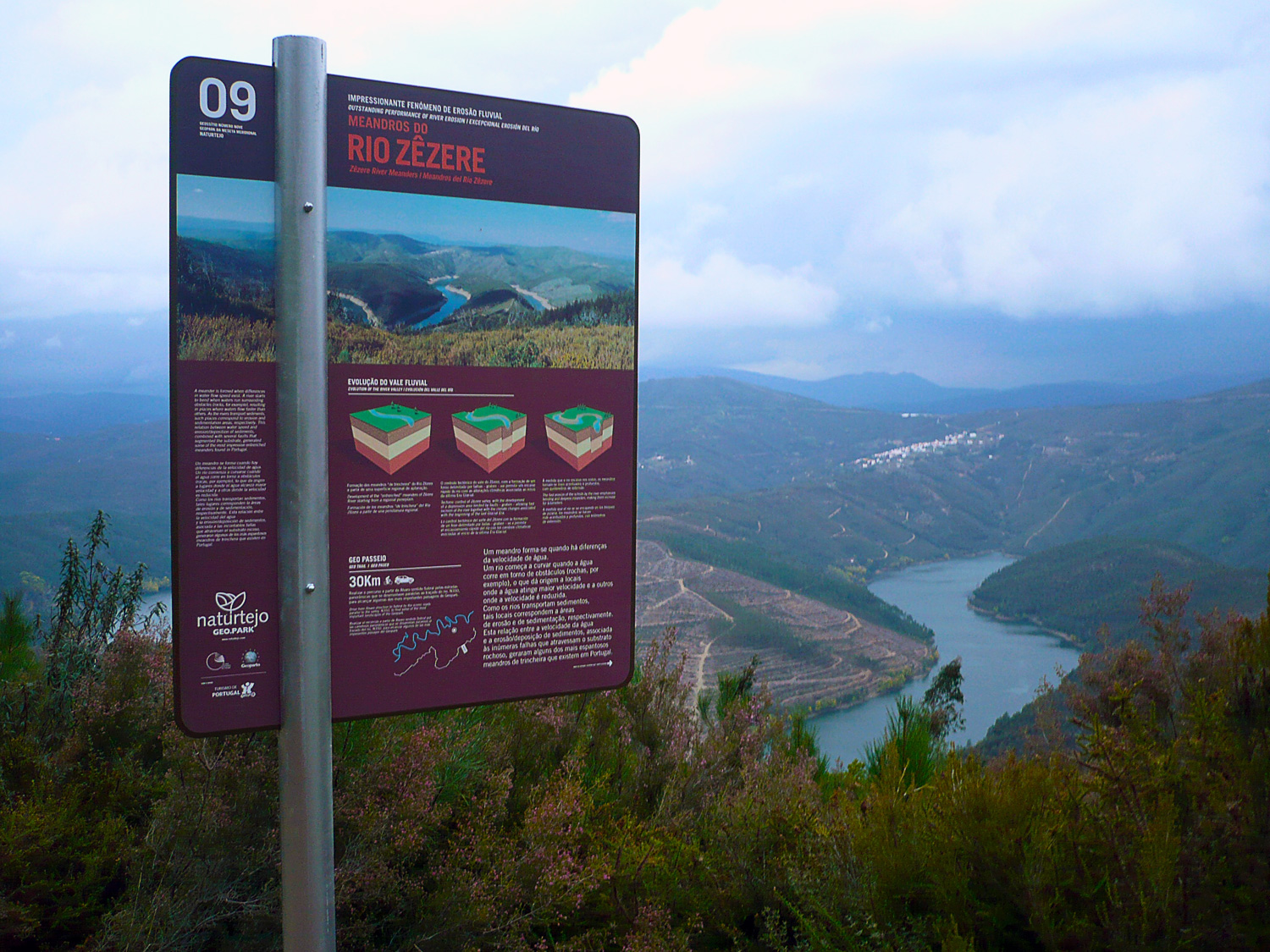 O rio Zêzere corre, actualmente, num vale com meandros encaixados no duro substrato metamórfico. O Zêzere ancestral tinha uma planície aluvial com canal meandriformes (meandros divagantes devidos à erosão na margem côncava e deposição de sedimentos na outra, acentuando assim a sua curvatura). Durante o Quaternário (últimos 1,8 Ma), o soerguimento tectónico e os baixos níveis do mar determinaram que o canal activo passasse a escavar na vertical (incisão fluvial) convertendo o canal meandriforme num estreito vale meandriforme.