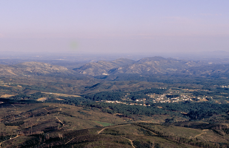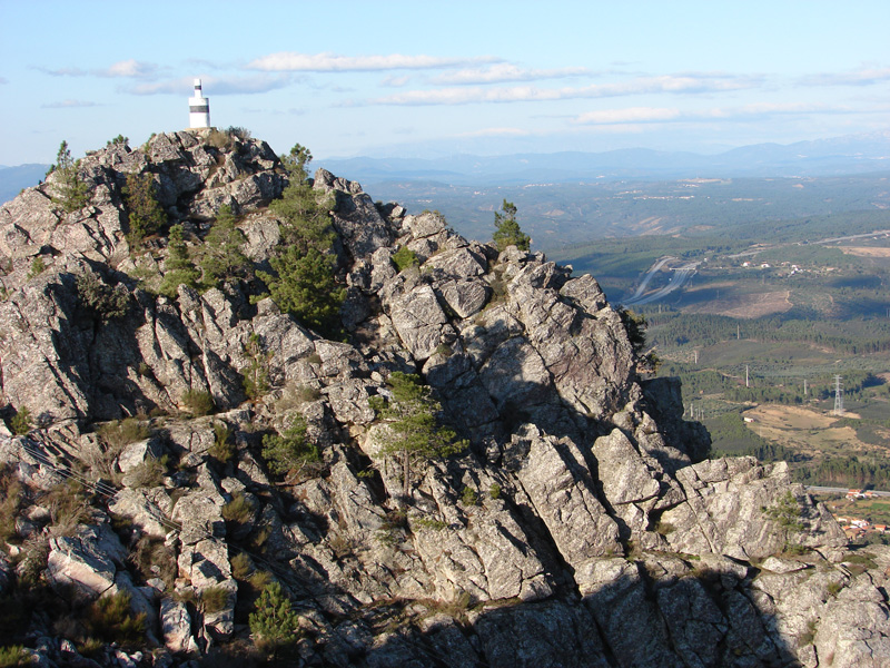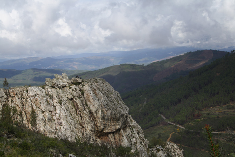 Desta fraga quartzítica as panorâmicas vertiginosas alargam-se pelo vale da Ribeira das Casas da Zebreira, que corre, 200 m abaixo.